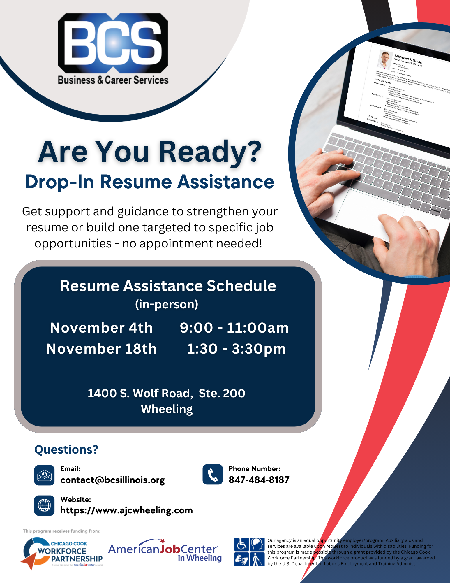 The American Job Center in Wheeling is committed to providing all customers with quality, professional services as well as a safe and comfortable learning environment. The use of our resources implies acceptance of our Customer Code of Conduct, which is based on the principle of respect for all customers and staff. READ: https://www.ajcwheeling.com/wp-content/uploads/2020/08/Customer-Code-of-Conduct-handout.pdf