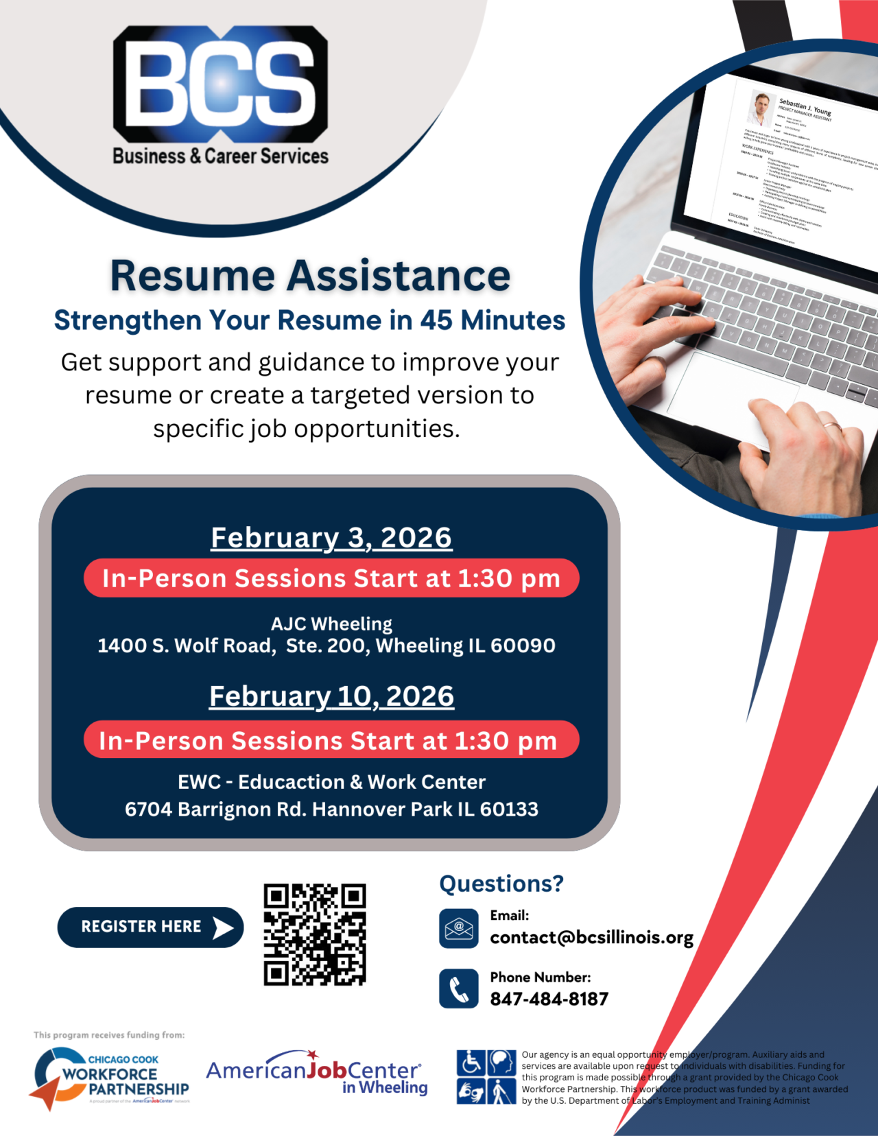 IMPORTANT: For additional job fairs, free workshops and free computer classes, visit https://www.ajcwheeling.com/